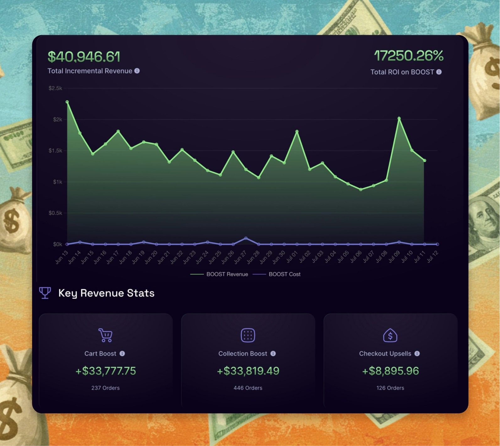 Moneyboard is where promises become proof. It’s our way of showing you that Boost isn’t just talk—it’s a real growth engine for your store.- Revenue Tracking: See the extra earnings Boost generates for your store