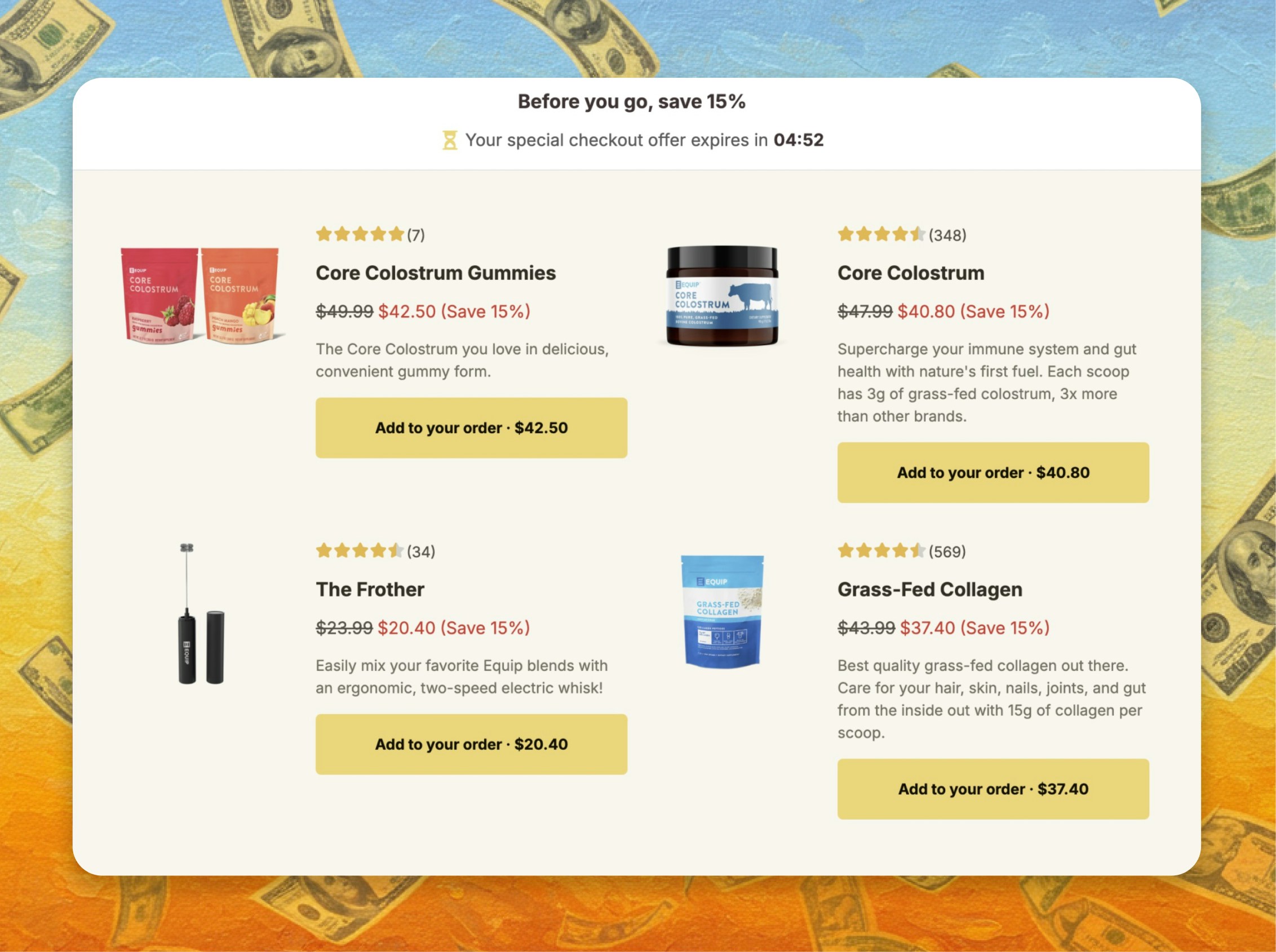 Craft the perfect post-purchase journey:- Go big with a two-page upsell extravaganza