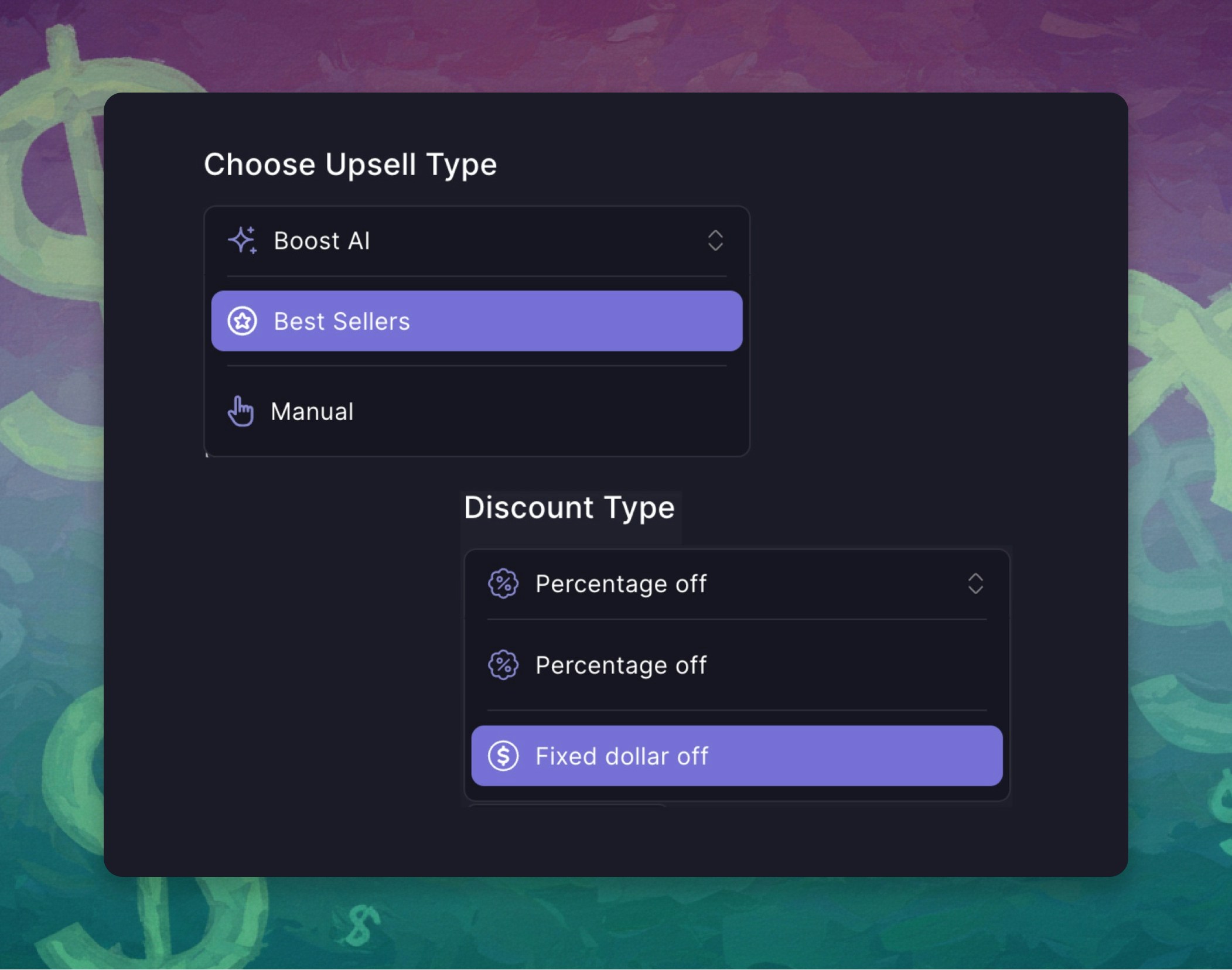 Craft deals that sing on each offer page:- Toggle between percentage-off and fixed-amount discounts